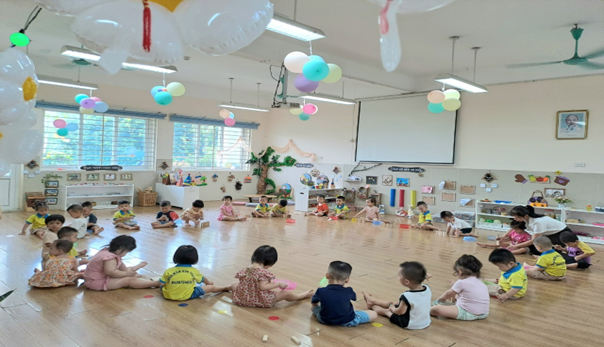 Năm học mới 2023-2024 đã bắt đầu đối với các bé lớp Nhà trẻ D1 Trường mầm non Thạch Bàn. Để các con thích nghi tốt hơn với môi trường mới, thì những bài học đầu tiên các cô giáo dành cho các con là những bài học hướng dẫn các con thực hành các kỹ năng tự phục vụ như: Biết chào hỏi cô và ông bà, bố mẹ khi vào lớp, biết tự cất đồ dùng của mình, biết tự cầm thìa xúc ăn, thực hiện các kỹ năng vệ sinh cá nhân và tự nguyện giúp đỡ cô giáo cũng như các bạn những công việc vừa sức của mình. Ở trường không những bé được thực hành các kỹ năng mà còn được tham gia các hoạt động như: Hoạt động giáo dục thể chất, hoạt động với đồ vật, làm quen với văn học qua các bài thơ và câu chuyện; Bé hứng thu say mê với những con rối, khám phá những sắc màu rực rỡ trong hoạt động tạo hình.