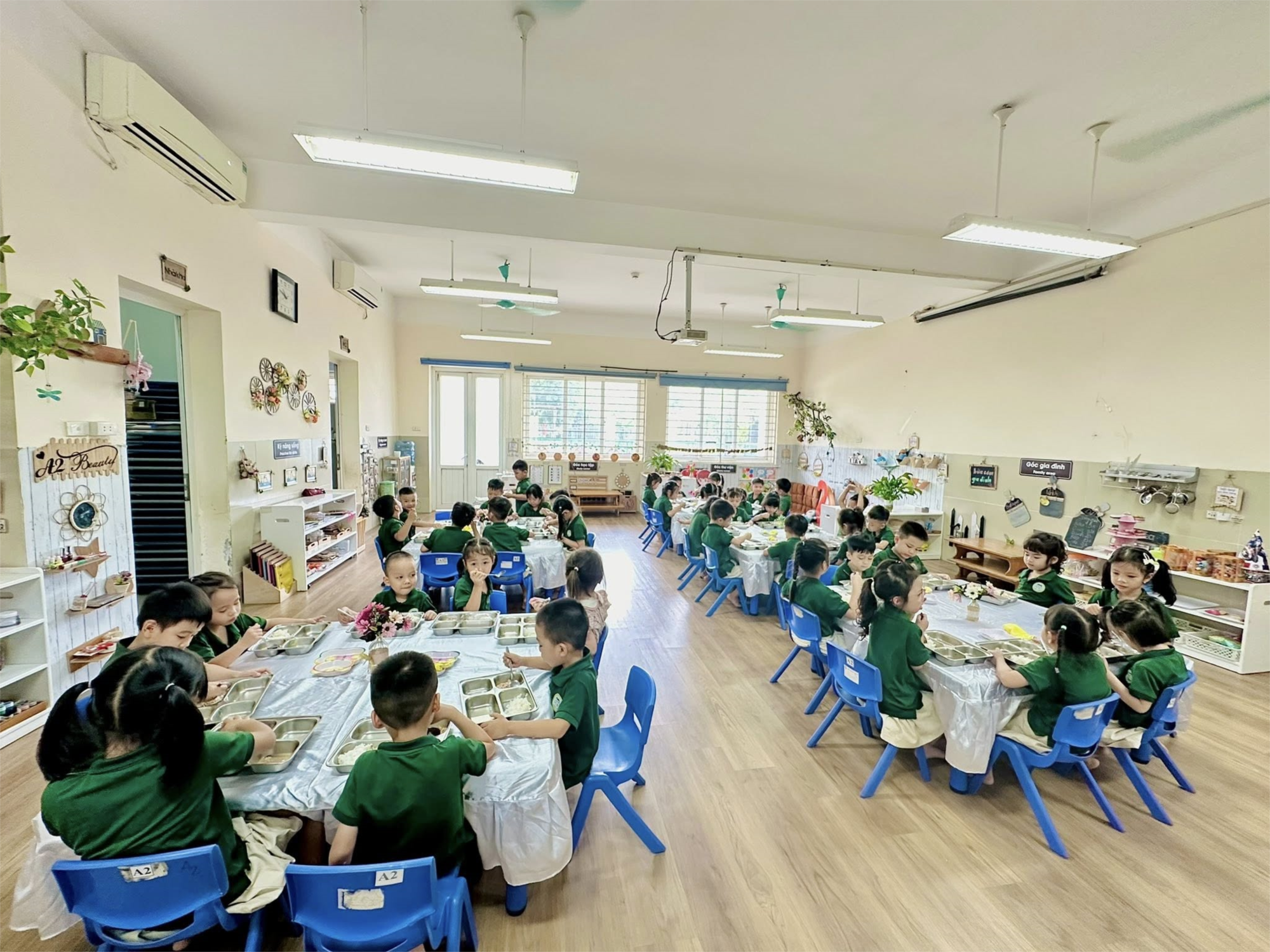 Điều tuyệt vời là tất cả các bé đều ăn hết suất, gương mặt rạng rỡ, đầy hào hứng. Không còn cảnh nhăn nhó, chần chừ, thay vào đó là những nụ cười tươi và lời khen ngợi dành cho nhau.