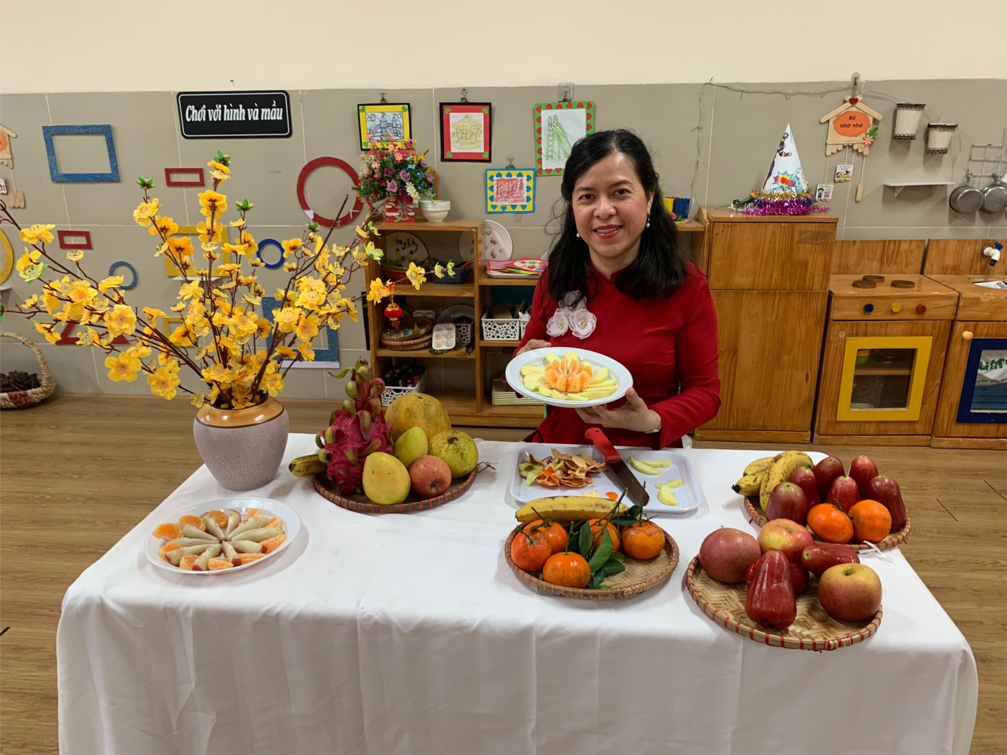 Bên cạnh việc phát triển thể chất cho bé thì việc phát triển cảm xúc, phát triển nhận thức cũng là khía cạnh vô cùng quan trọng trong quá trình phát triển toàn diện của trẻ. Hơn nữa, với mong muốn giúp bé phát triển được khả năng ngôn ngữ, hoạt động nhận biết tập nói như gọi, tên nói được những đặc điểm, đặc trưng của một số loại trái cây quen thuộc. Các bạn nhỏ lớp Nhà trẻ D3 rất hứng thú khi được tham gia hoạt động “ nhận biết một số loại quả”. Thông qua hoạt động này các con đã biết được rất nhiều các loại hoa quả khác nhau và các con cũng nói được tên các loại quả, nói được màu sắc của cũng như những đặc điểm cơ bản của các loại quả đó. Những vật dụng cần thiết mà các cô chuẩn bị cho các con trong hoạt động này như sau: quả bưởi, quả xoài, các loại quả mà bé yêu thích.Để các bé bất ngờ hơn, các cô có thể cho trẻ chơi 1 trò chơi giúp trẻ tập trung và cuốn hút vào hoạt động như trò chơi nhúc nhích ngón tay hay cá vàng bơi bằng ngón tay. Sau đó tạo tình huống bất ngờ giới thiệu 1 cách “thần bí” về các loại quả mà cô đã chuẩn bị sẵn.