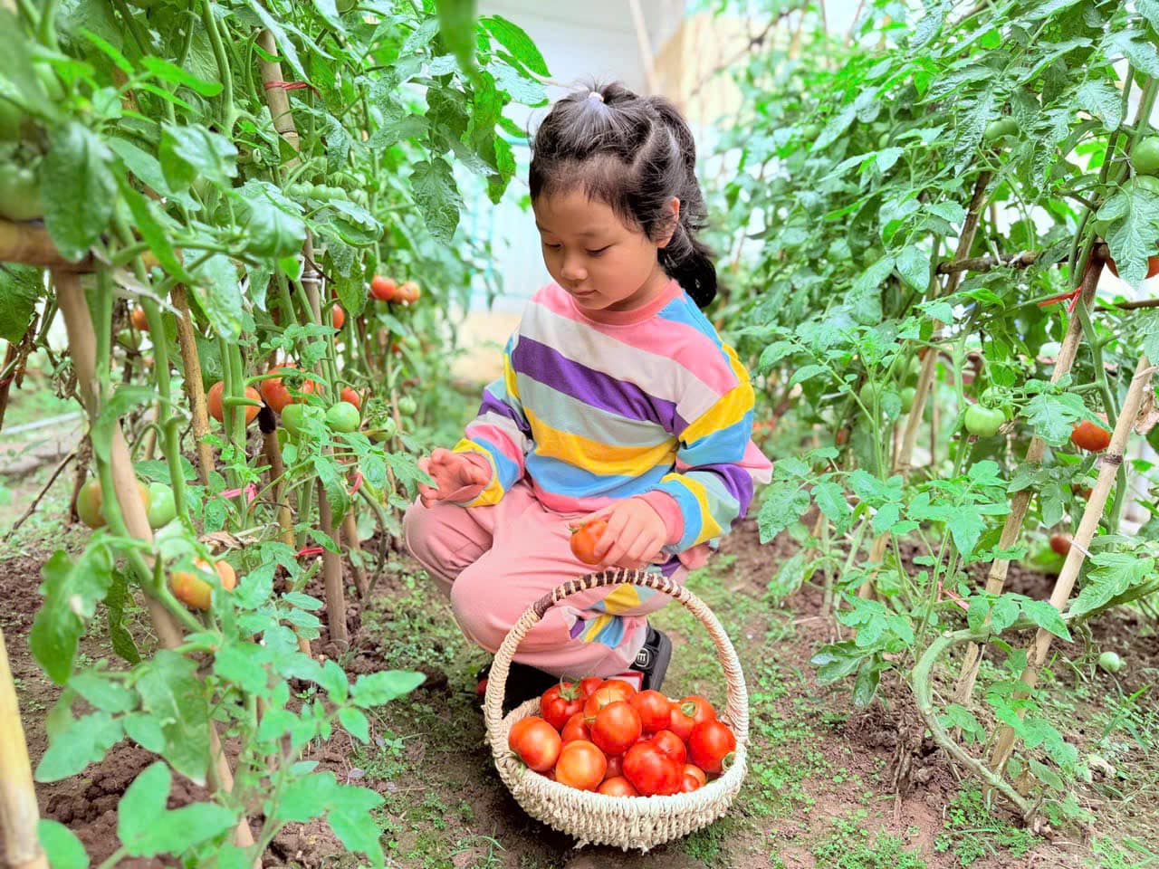 Những gương mặt rạng rỡ, đôi bàn tay nhỏ xinh nâng niu từng trái cà chua, mới thấy được niềm vui và sự hào hứng của các
