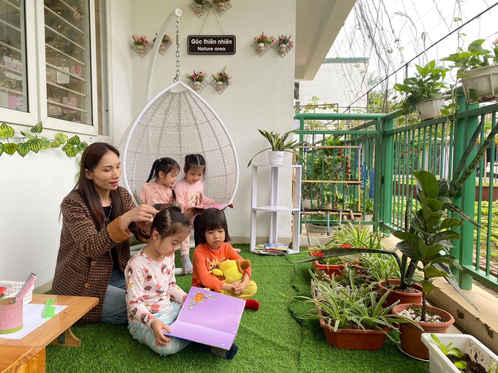 Hình ảnh: Trẻ hoạt động ở ngoài góc thiên nhiên
