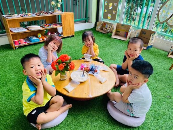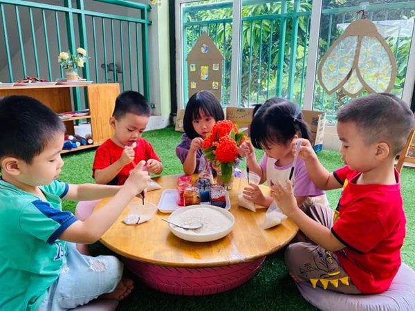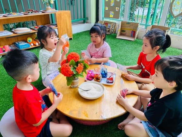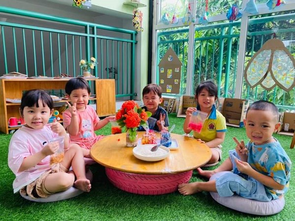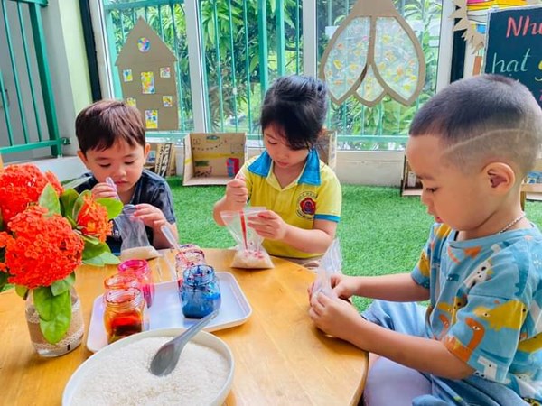Tập ảnh : các bạn nhỏ lớp MGN B2 làm thí nghiệm hạt gạo đổi màu