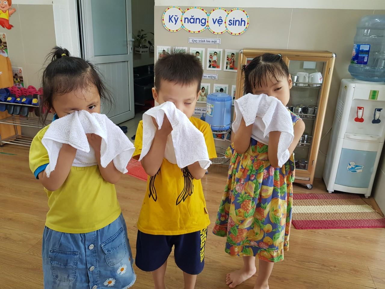 Trẻ rửa tay trước khi ăn và sau khi chơi