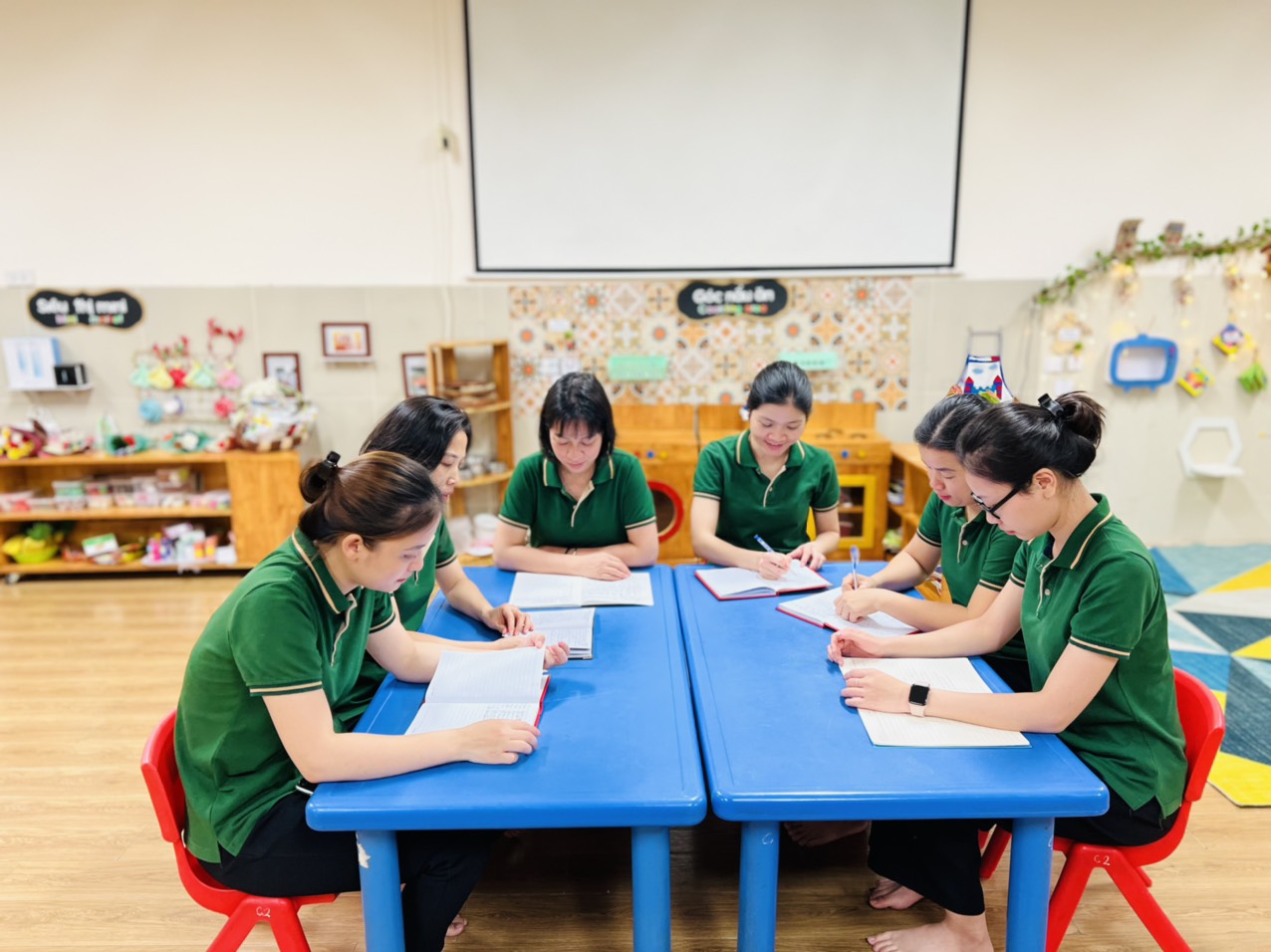 Trước khi tổ chức các hoạt động giao lưu giữa các lớp, ngay từ đầu tháng, trong buổi sinh hoạt chuyên môn, giáo viên của các lớp trong khối đã thống nhất về thời gian, nội dung, hình thức, trò chơi...và phân công cụ thể lớp nào chuẩn bị đồ dùng, đồ chơi theo ngày, theo tuần tương ứng. Bên cạnh đó, cũng phân công cụ thể giáo viên điều khiển tổ chức hoạt động cho trẻ luân phiên nhau để tất cả giáo viên đều được rèn luyện khả năng điều khiển các hoạt động tập thể, linh hoạt xử lý các tình huống, tăng cường khả năng bao quát, chủ động