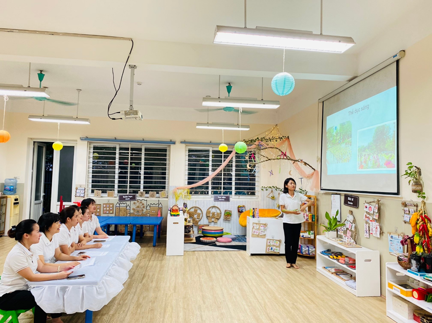 Nắm bắt được tầm quan trọng của giáo dục thể chất. Hôm nay, khối MGN đã tổ chức buổi sinh họat chuyên môn cùng nhau tìm ra các hoạt động tổ chức PTVĐ cho trẻ. Trong buổi sinh hoạt, các đ/c giáo viên trong tổ đã cùng nhau chỉ ra các hoạt động tổ chức PTVĐ: hoạt động thể dục sáng, các tiết học thể dục , trò chơi vận động ở hoạt động ngoài trời, trong các hoạt động giao lưu vận động và hoạt động góc