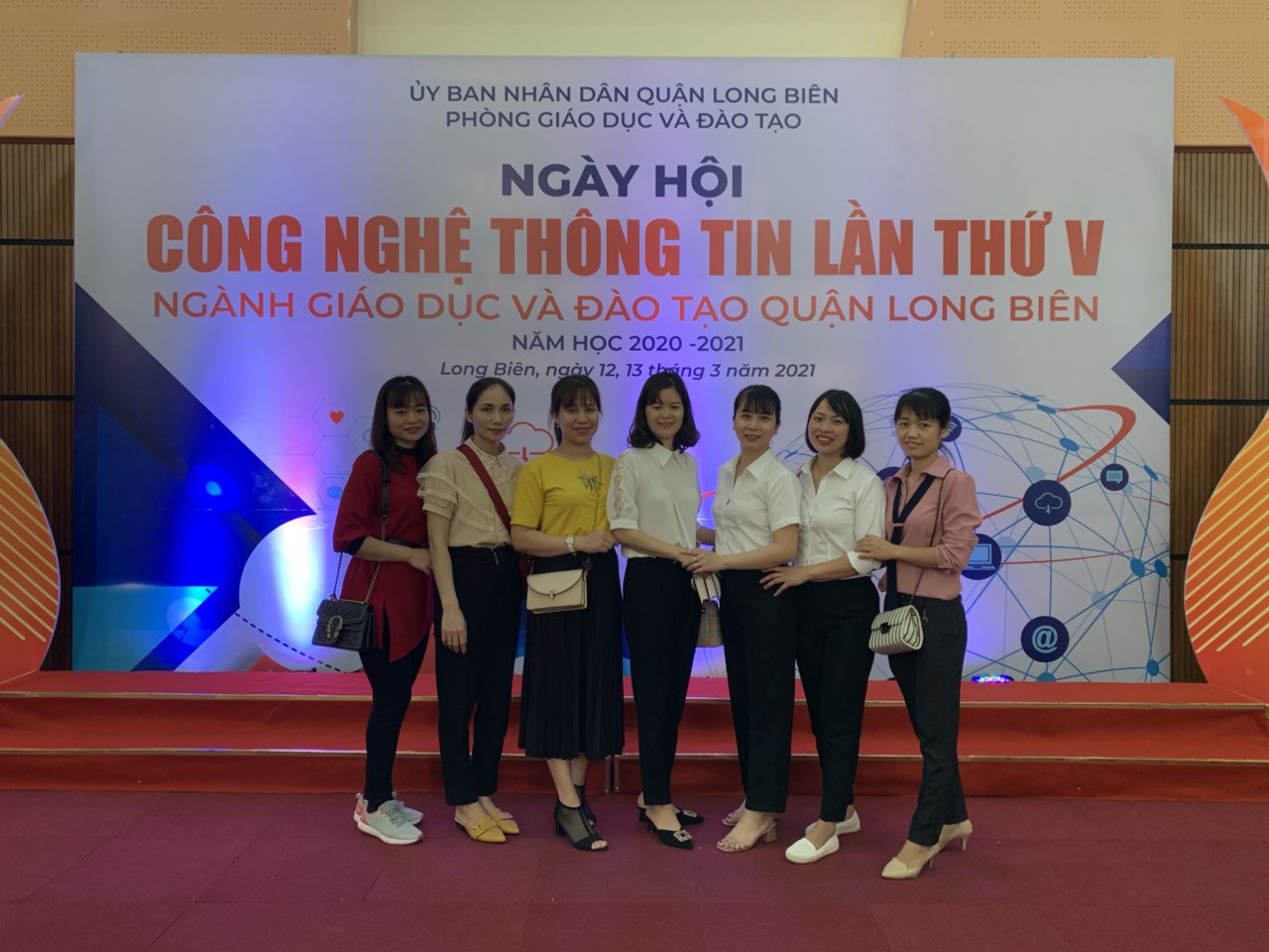 Các đồng chí giáo viên hứng khởi tham gia ngày hội CNTT.