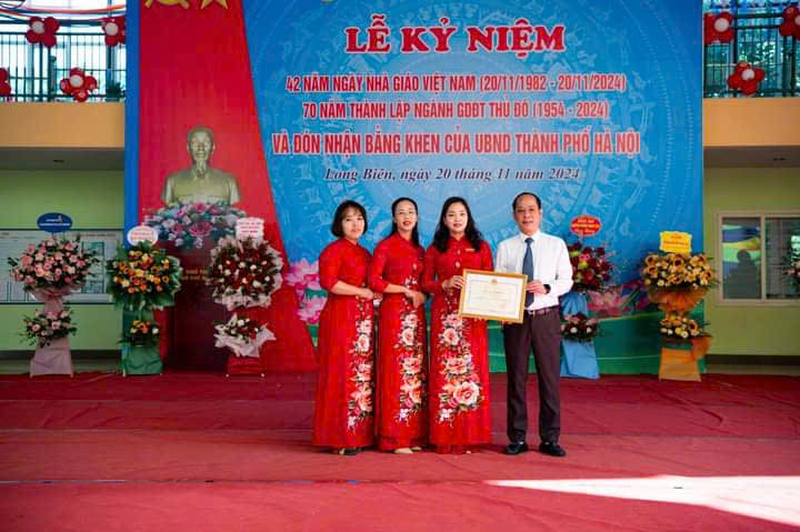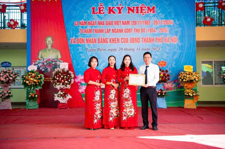 Thư viện ảnh Trường Mầm non Thạch Bàn long trọng tổ chức: “Lễ kỉ niệm 42 năm ngày Nhà giáo Việt Nam 20/11/1982 – 2-/11/2024), 70 năm Ngành giáo dục Thủ Đô (1954 – 2024) và đón nhận Bằng khen của UBND Thành phố Hà Nội, bằng khen của Bộ giáo dục”.