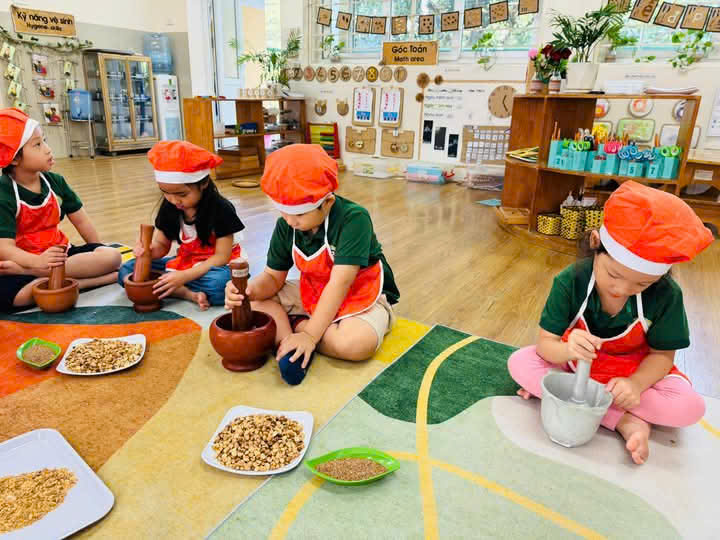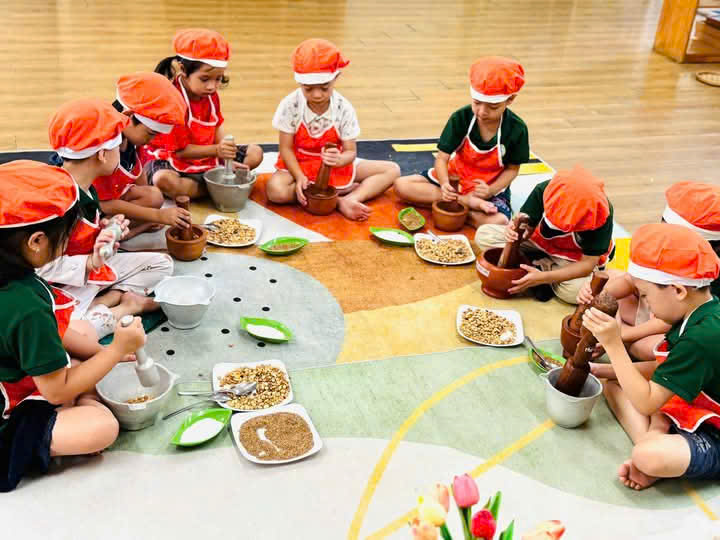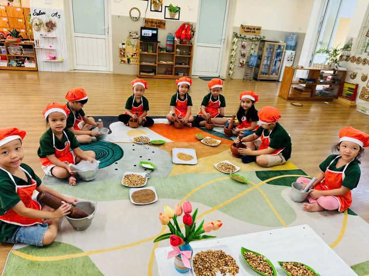 Các bạn nhỏ lớp MGL A5 làm “muối lạc vừng”