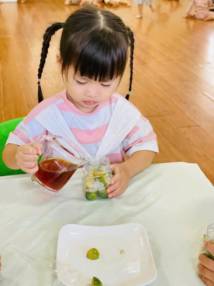 các bé lớp C1 lựa chọn bài thuốc dân gian có từ xa xưa làm Siro "Quất ngâm mật ong"