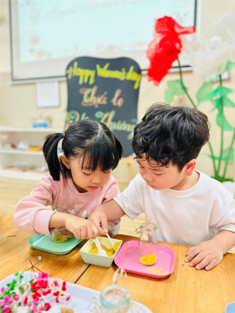 Các bạn nhỏ lớp MGN B5 làm tranh cát