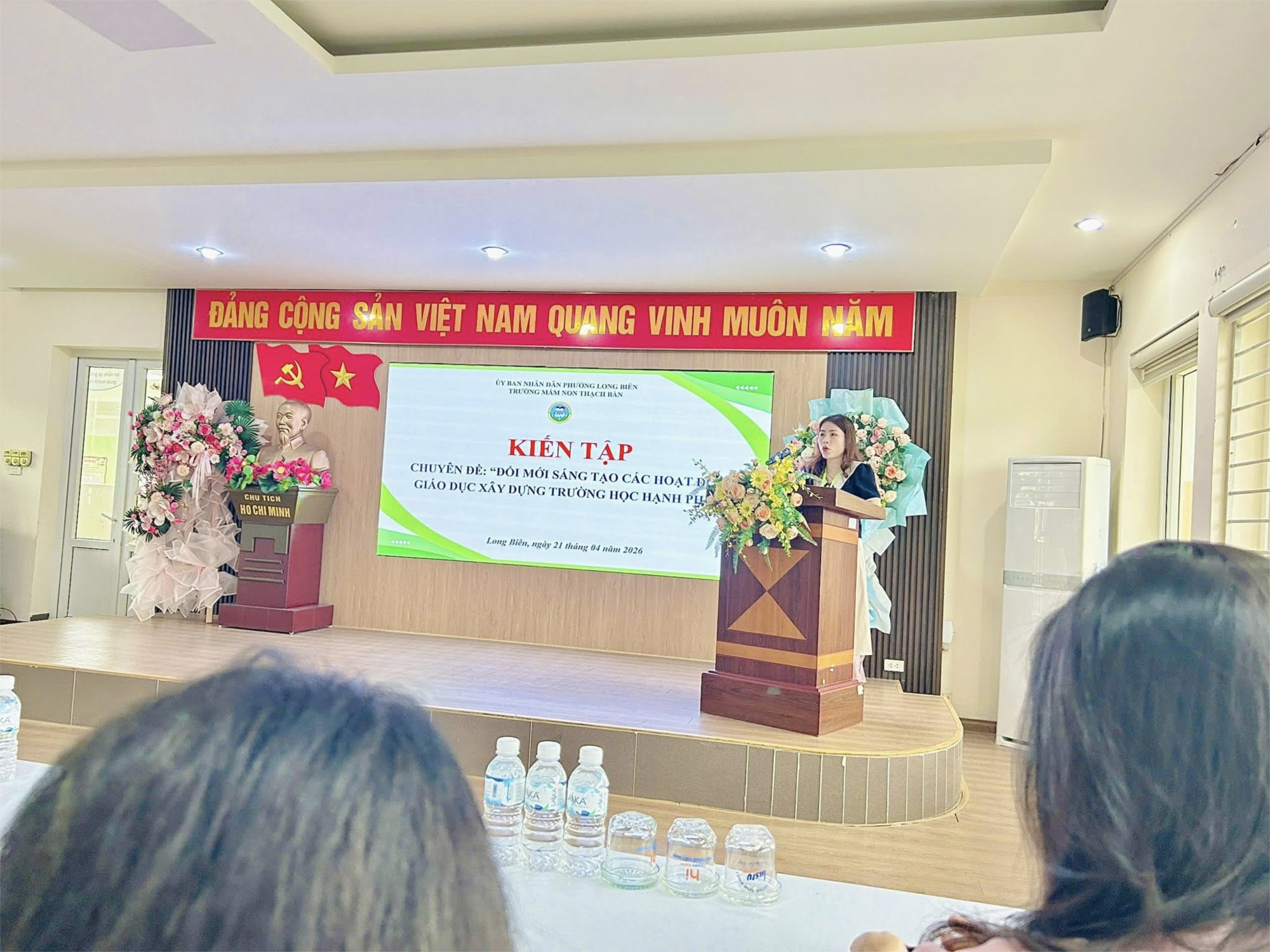 Buổi chuyên đề vinh dự được đón tiếp đồng chí Nguyễn Thị Diệu Linh – Phó Trưởng phòng Văn hoá và Xã hội tới dự và phát biểu chỉ đạo. Đồng chí ghi nhận sự chủ động, sáng tạo của nhà trường trong công tác chuyên môn, đồng thời nhấn mạnh việc tiếp tục đổi mới phương pháp giáo dục, xây dựng môi trường học tập hạnh phúc, lấy trẻ làm trung tâm và nâng cao chất lượng chăm sóc, giáo dục trẻ trong giai đoạn mới.