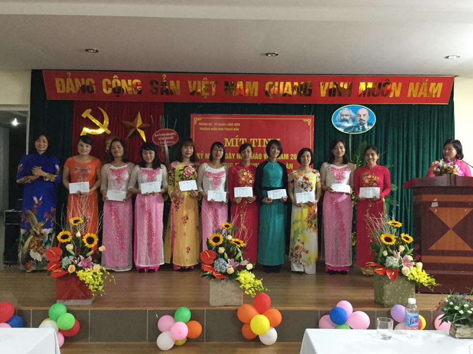 Tại buổi lễ, đồng chí Nguyễn Thị Nghi Hương - Hiệu trưởng nhà trường đã đọc diễn văn ôn lại truyền thống ngày Nhà giáo Việt Nam, đồng thời vinh danh và biểu dương, khen thưởng các gương điển hình tiên tiến đã có thành tích trong các phong trào thi đua. Tự hào với sự nghiệp trồng cây, trồng người, đồng chí nhấn mạnh nhiệm vụ trọng tâm của nhà trường trong thời kỳ tiếp theo là tiếp tục phát huy truyền thống quí báu của nhà trường trong học tập, rèn luyện không ngừng nâng cao chất lượng CS – GD trẻ, giữ vững thương hiệu trường mầm non đạt chuẩn Quốc Gia mức độ II và luôn là ngôi nhà thứ hai của trẻ.