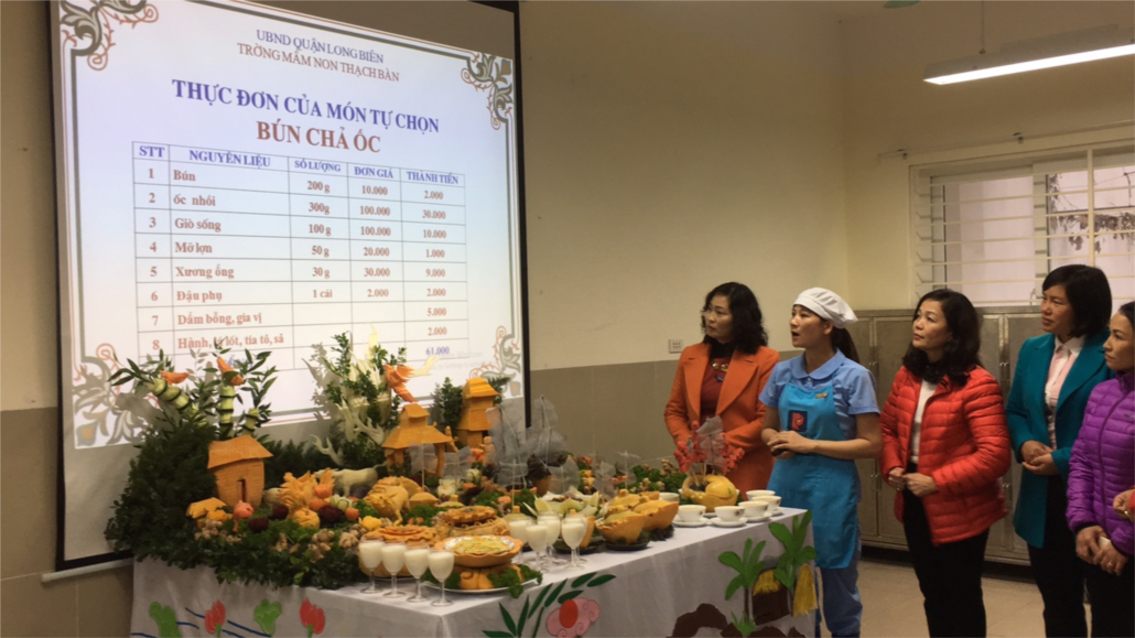 Bên cạnh đó, là cong tác nuôi dưỡng với mục đích nâng cao kỹ thuật chế biến món ăn, dây chuyền nấu ăn phù hợp, xây dựng thực đơn hợp lý, đảm bảo cân đối tỷ lệ các chất, đảm bảo vệ sinh thực phẩm phù hợp với trẻ trong độ tuổi nhà trẻ và mẫu giáo.