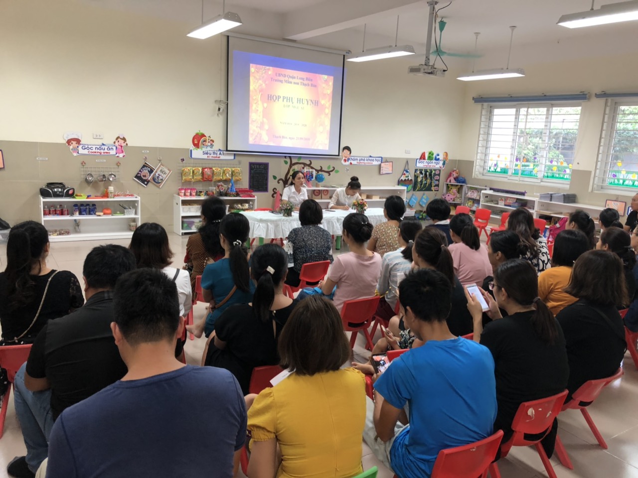 Để thực hiện nhiệm vụ năm học 2019 - 2020, đảm bảo hiệu quả công tác phối hợp giữa nhà trường và gia đình trong công tác chăm sóc giáo dục trẻ, đồng thời nắm bắt được tâm tự, nguyện vọng, mong muốn của các bậc phụ huynh, chiều ngày 19/9, 21/9/2019, trường Mầm Non Thạch Bàn đã tổ chức họp phụ huynh học sinh đầu năm học. Chủ trì cuộc họp là đồng chí Nguyễn Thị Nghi Hương– Bí thư Chi Bộ - Hiệu trưởng nhà trường, giáo viên phụ trách, cùng các bậc phụ huynh của 21 lớp.