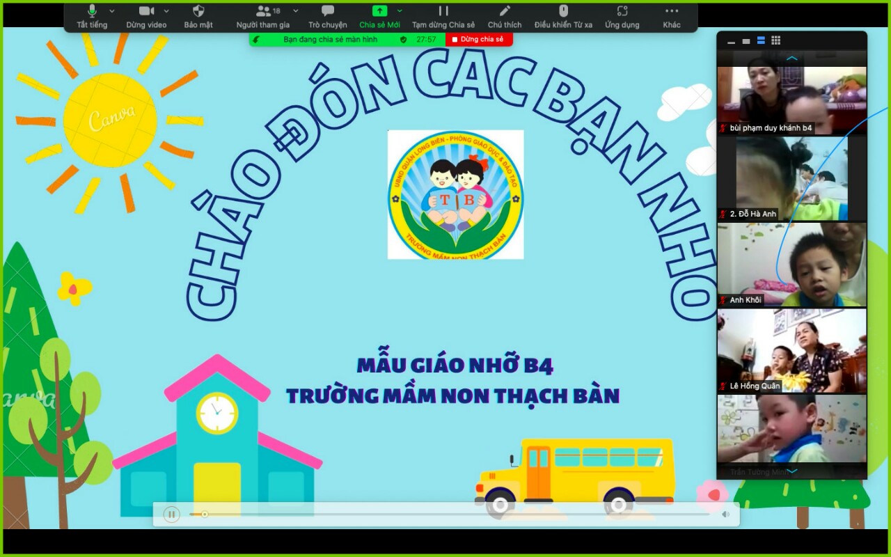 Với mục đích đó, được sự hướng dẫn của các cấp lãnh đạo, hôm nay, ngày 5/9/2021, Trường mầm non Thạch Bàn long trọng tổ chức các hoạt động khai giảng trực tuyến năm học mới 2021 - 2022. Một số hình ảnh :