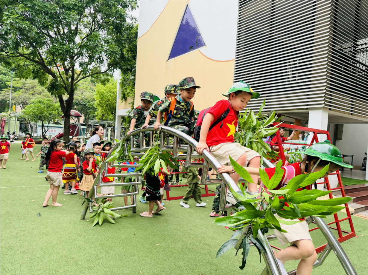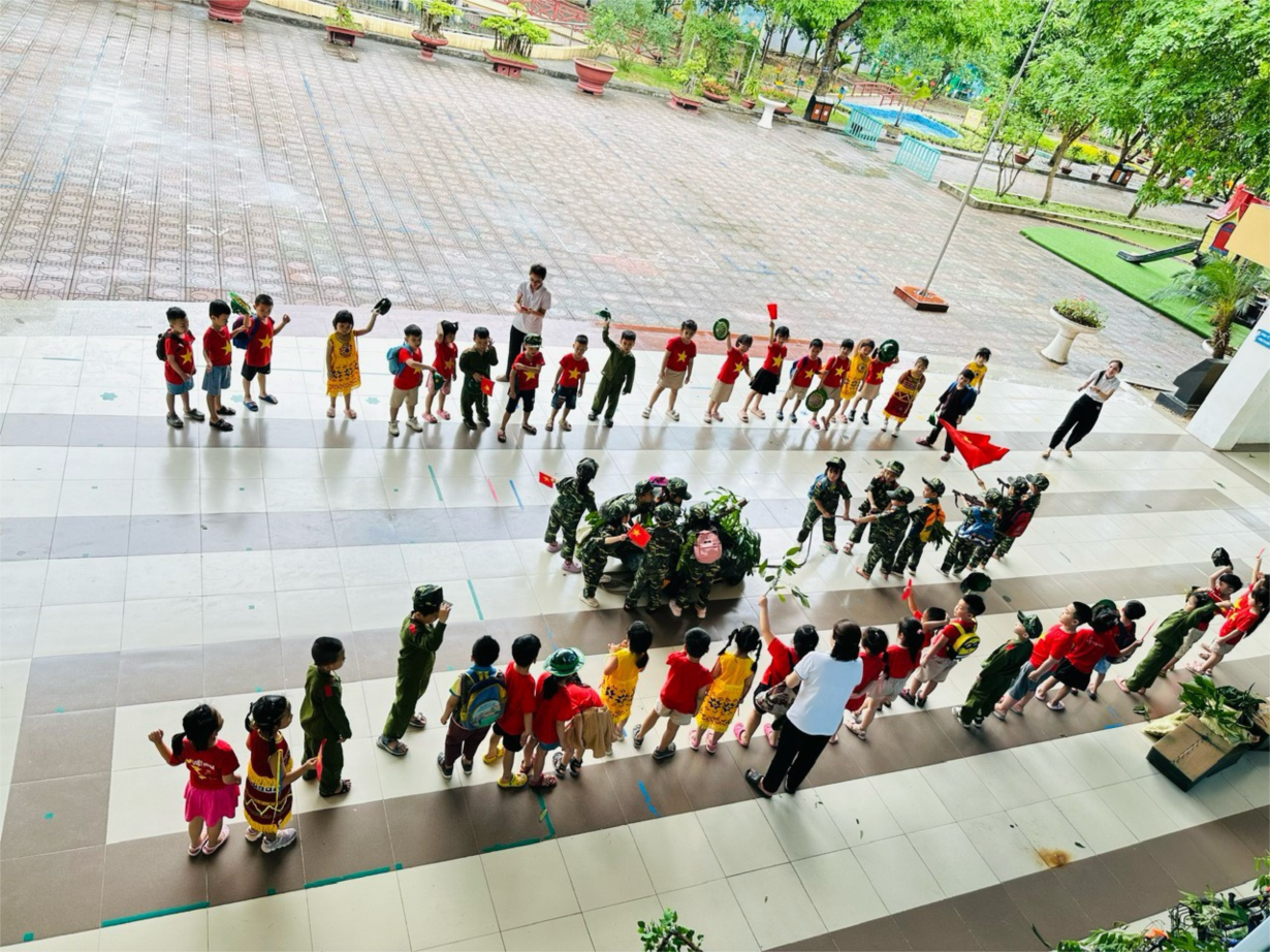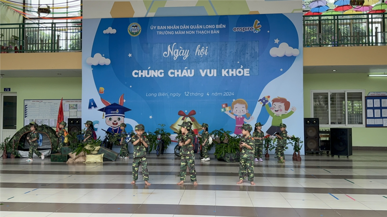 Các bé trường MN Thạch Bàn chào mừng 70 năm ngày giải phóng thủ đô