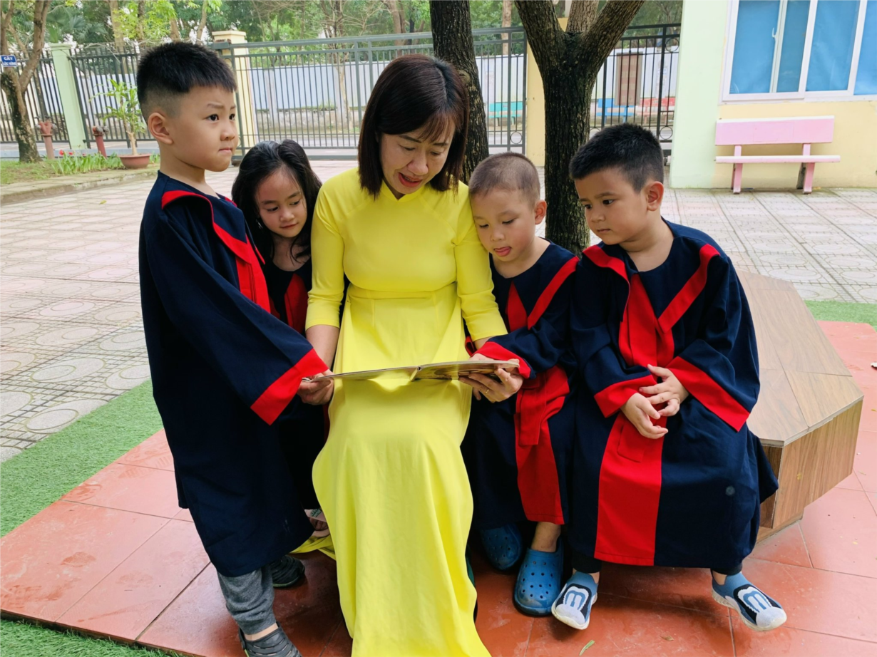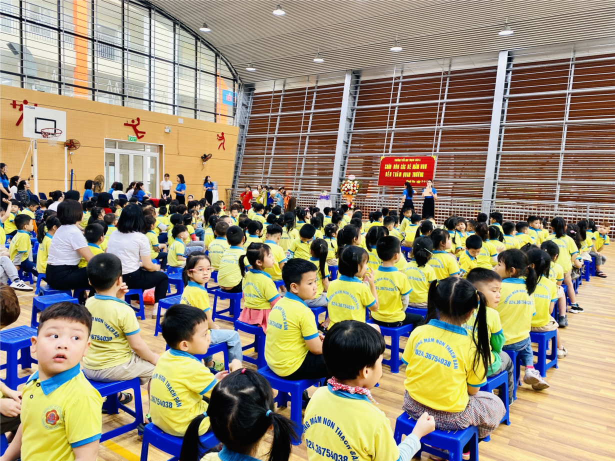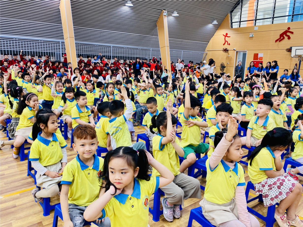 Các bé trường MN Thạch Bàn chào mừng 70 năm ngày giải phóng thủ đô