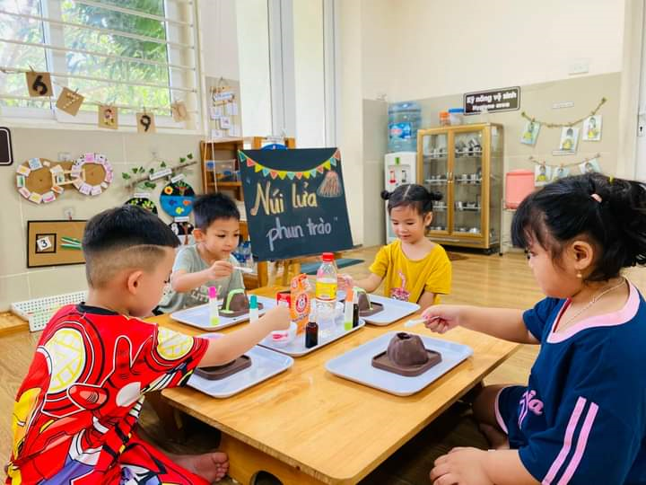 Cùng các bạn nhỏ lớp B5 làm thí nghiệm núi lửa phun trào