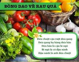 Vốn thiệt hành hươngGiục ngựa buông cươngLà rau mã đề---HỌ NHÀ QUẢVe vẻ vè veNghe vè cây tráiĐây ở trên mâyLà trái đậu rồngCó con thật đôngLà trái đu đủChặt ra nhiều mủLà trái mít ướtHình tựa gà xướcVốn thật trái thơmCái đầu chơm bơmLà trái bắp nấuHình thù xâu xấuLà trái cà dêNgứa ngáy quá ghêLá trái mắt mèoKhoanh tay lo nghèoLà trái bần ổiSông sâu chẳng lộiLà trái mãng cầuChẳng thấy người đâuThật là trái cáchTrong ruột ọc ạchLà trái dừa xiêmỞ khắp xóm giềngLá trái bí rợMẹ sai đi chợVốn thiệt trái dâuQuen ở ao sâuLà trái bông súng.