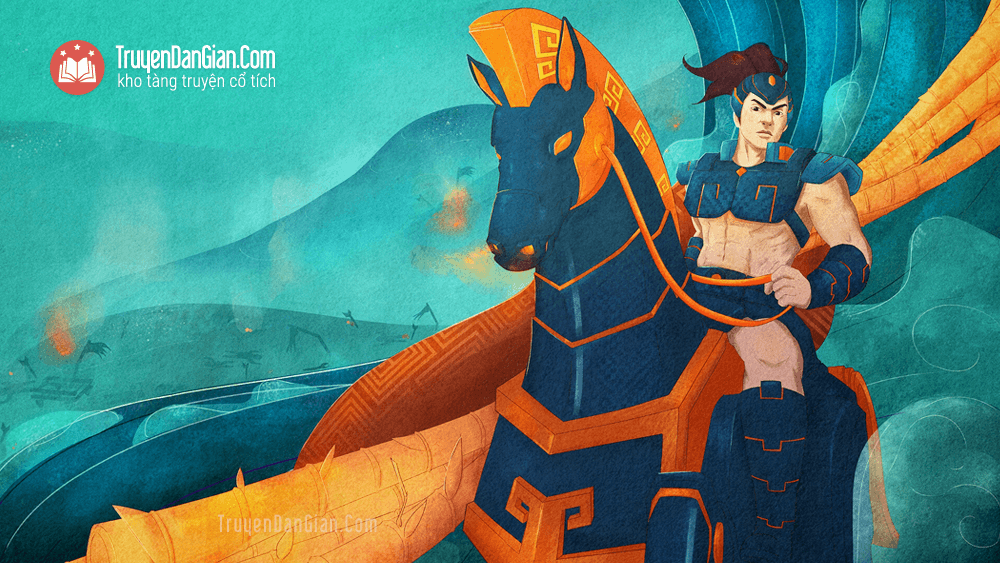 – Phiền quan Sứ hãy mau mau về xin nhà vua đúc cho ta một con ngựa sắt, một chiếc roi sắt, một áo giáp sắt[2] và một nón sắt để ta đi đánh giặc.